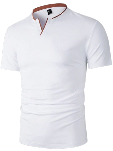 Mens Formal Shirts Casual Round Neck Short Sleeved T-shirt Polos – White